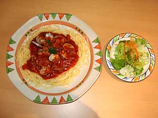 午後、同じく レストランプラザにある 「スターアイル」へ。 軽めにスパゲティ。「 ボンゴレッソ」を注文。サラダ付き。 アサリとトマトを絡めたソース。 パスタもアルデンテでウマイ!! |