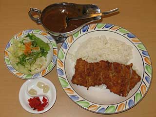 今日もまずはメシから。 レストランプラザにある 「スターアイル」へ。 「 カツカレーライス」を注文。サラダ付き。 カツは普通のトンカツという感じ。 カレーはまずまずウマイ。 で、意外に量もあってお腹いっぱい。満足! |