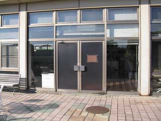 同じく 内馬場にある 無料休憩所。 こちらも入口が閉鎖されていた。 中を覗いてみると、段ボール箱等が山積み。 どういうことだ!? |