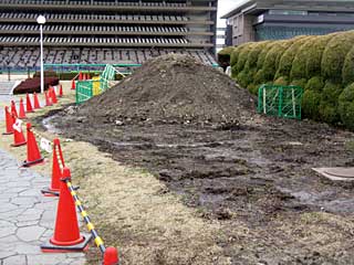 内馬場の バラ園も、一面に植えてあったバラが取り除かれ、このような状態。 |