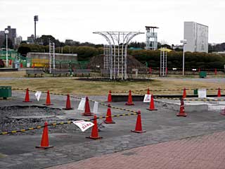 バラ園付近に残っていた売店の簡易店舗。 東京競馬場がリニューアルする以前、ここでラーメン屋などが営業をしていたが、リニューアル後は閉鎖され、数年間放置されたままだった。 その簡易売店も遂に撤去。 遺構が残るのみになっていた。 |  |  |