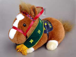先月、新しい馬ぐるみが発売されたが、本日ようやく購入。 菊花賞仕様のオウケンブルースリ。 |