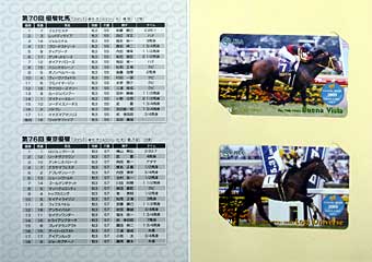 今週より「クラシックロードオッズカード Vol.2」が発売になったので、 ターフィーショップで購入。2,000円。 デザインは オークスを勝ったブエナビスタと、 日本ダービーを勝ったロジユニヴァース。 |