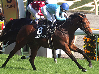 今日のメインは、ダービートライアルの プリンシパルステークス。芝2000m。 1着馬のみ 日本ダービーの優先出走権が与えられる。 その最後の1枚の切符を手にしたのが1番人気 スピルバーグ。 直線、坂を駆け上がってから追い込んで快勝! ディープインパクト産駒で 内田博幸騎手。 |