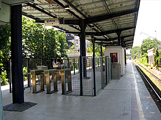 駅を出たら、駅前の道を左へ進みます。 |  |