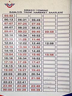 参考までにスィルケジ駅の時刻表を掲載。