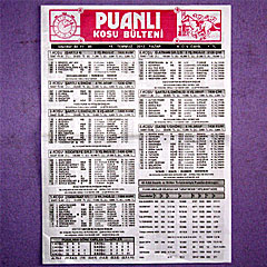 トルコは イスラム教国家ですが、アラブの国々ほど厳格ではないため、普通に馬券も売られています。 マークカード方式で、発売窓口は有人。 馬券はよくあるレシートタイプのもの。 馬券の種類はたくさんありすぎてよくわからず… |