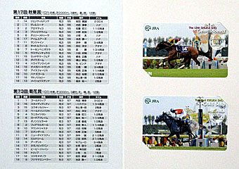今週、ようやく「 クラシックロードオッズカード2012 vol.3」の発売が始まりました。 デザインは秋華賞馬 ジェンティルドンナと、菊花賞馬 ゴールドシップ。 vol.1と同じ組み合わせです。 |