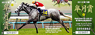 記念入場券も発売されました。 デザインは 昨年の2冠馬で、 有馬記念も制した ゴールドシップ。 |