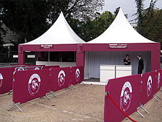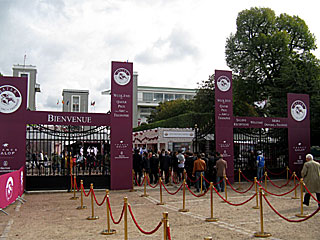 やがて、舗装された道路に出るので、そのまま道なりに右へ進むと、ロンシャン競馬場の入場門に到着です。 駅から徒歩15分ほど。 ルートマップ |  |