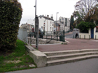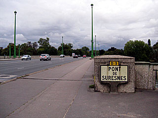 しばらく歩くと、シュレーヌ橋(Pont de Suresnes)でセーヌ川を渡ります。 |  |