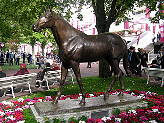場内には スワーヴダンサーの馬像があります。 1991年の凱旋門賞馬で、同年のカルティエ賞最優秀3歳牡馬にも選ばれた名馬。 東京競馬場にも、日本競馬史を代表する馬ディープインパクトの馬像とか建てて欲しいなぁ。 |