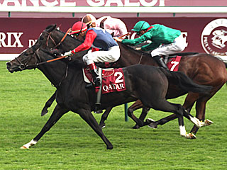 今日は1Rの発走時刻が14:30、最終8Rが18:25となっており、1~4RがGⅡ戦。 けど、自分は午前中の飛行機で シャルルドゴール空港に着き、ホテルに荷物置いてから競馬場へ向かったため、3Rからの参戦。 3RはG2 ロワイヤリュー賞。古馬による芝2500m戦。 勝ったのは〔2〕 フリーネ( Frine)。 鞍上は G.モッセ騎手。 |