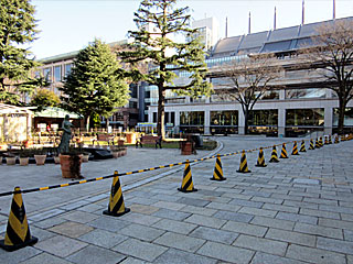 場内、特に日陰となるスタンド裏手は、多くの雪で路面が凍結。 ローズガーデンや、パドック脇の階段など、多くの場所が閉鎖されていました。 |