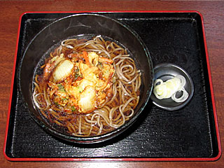 昼飯は レストランプラザにある 「和食れすとらん磯」へ。 「 かき揚げそば」を注文。 普通においしかったが、やっぱり馬そば深大寺と比べてしまう。 申し訳ないが、味も、値段も、量も適わないという感じ… |