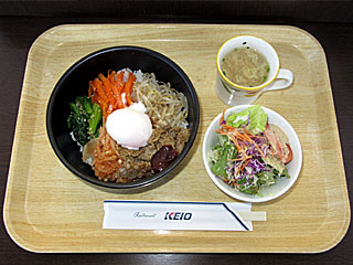 で、まずはメシ。 フジビュースタンド5Fの 「ブラッスリーろんたん」へ。 新メニュー「 温卵のせビビンバ丼」を注文。 基本的にビビンバはあまり好きではないのだが、これは非常においしかった! 今年もろんたんさんのいい仕事に期待! |