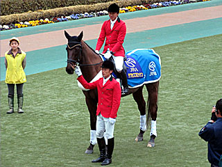 最終レース終了後、抽選で当たった人を対象にサクセスブロッケンとの記念撮影会がパドックで行われていました。 帰り際、その様子をチラ見してく。 |