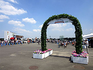 今週から 東京競馬場で全国各地の クラフトビール( 地ビール)を集めた「 ビアフェス」と、毎週テーマを変えたグルメが集結する「 メガグルメフェスティバル」が始まりました。 今週のテーマは「 ゴールデンウィーク・グルメホリデー!」。 並んだ屋台は アメリカンロングポテト、 讃岐うどん、 富士桜ポーク、 クロワッサンたい焼き、 ホットドッグ、 ケバブ、 パンツェロッティなど。 世間はGW真っ只中、今日は天気も良く、会場も多くの人で賑わっていましたが、せっかくなので「 クロワッサンたい焼き」と「 信玄ソフト」を並んで購入。 |