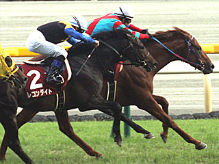 最終レースはGⅡ 目黒記念。芝2500m。 ダービージョッキーの M.デムーロ騎手が騎乗する レコンダイトが抜け出したところ、内をすくったのが11番人気の ヒットザターゲットと 小牧太騎手。 |