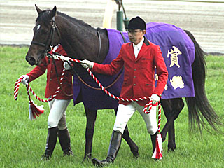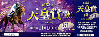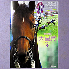 レーシングプログラムはカラーの特別版。 また、記念入場券も発売されました。 デザインはともに 昨年の優勝馬 スピルバーグ。 |  |  |