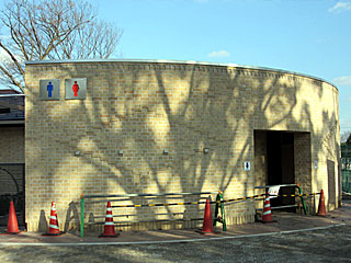 そして、工事が続いている 乗馬センター。 ほぼ完了して、工事用の柵も取り外されていましたが、併設するトイレには、まだ柵が設置されていました。 |