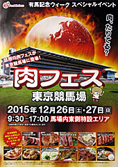 有馬記念週の 12/26,27に、東京競馬場で「 肉フェス」と題したグルメイベントが行われることが今日発表されました。 そのため、先月で東京開催は終わったのですが、内馬場の「 秋のメガグルメフェスティバル」のアーチはまだ残されたままになっています。 |  |  |