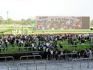 最終レース終了後、毎年恒例の「 芝コース開放」イベントが行われました。 やっぱり、内が荒れている… |