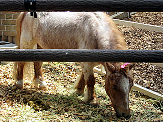 今日の ホースリンクは、馬車運行の担当馬 アラートデザイアと、ミニチュアホースの「 くるみ」が展示されていました。 |  |  |