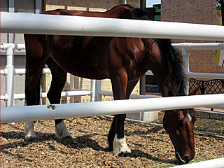 今日の 乗馬の展示コーナーには、 アラートデザイア、 ゴット、 カンクンの3頭が展示されていました。 アラートデザイアは、いつも馬車運行の仕事をしていますが、今日はここでのんびりと… |