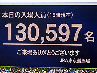 さらにダービーの発走直前、本日の15時現在の入場者数が発表されました。 その数、13万597人。 昨年は15時現在で11万6675人だったので、約1万4000人程多い計算。 ちなみに、ダービーデーの最終的な入場者数は13万9140人とのこと。前年比9561人増。 |