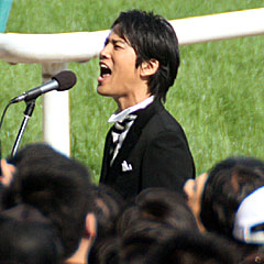そして、今年の 国歌独唱は 桐谷健太さん。 独特な歌い方に、場内がちょっとザワザワ… けど、この人、俳優なのでは? 2011年にJRAナビゲーターやってたから、その縁で選ばれたのかな? 今年こそ満を持して いきものがかりさんだと思っていたのに… |