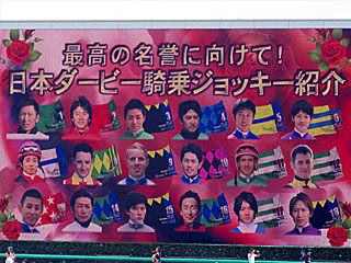 昼休みを迎え、毎年恒例の「日本ダービー騎乗ジョッキー紹介」。