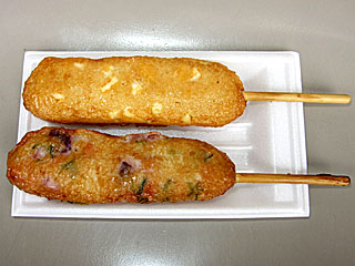 さらに 「ホースアイ」へ。 以前から気になっていた「 馬天」を購入。 チーズとタコの2種類があり、こちらも両方購入。 これはおいしい! ちなみに自分はタコの方がおいしいと思ったが、知人はチーズの方がおいしいと言っていた。 |