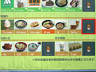 さらに内馬場の 「ファミリーゾーン売店(アンビシャン12号店)」も塗りつぶされてるのに気付く。 早速、確認しに行ってみたが、メニュー等はそのまま掲示されている状態。 この店、パークウインズでも開いていたり閉まっていたりするので、閉店したのか、今日は営業してないだけなのかは不明。 閉店したはずの 「ひといき茶屋」がグルメマップ上に残っているので、ただ単に貼り間違えたという可能性も… |  |  |