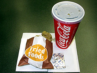 | 東京競馬場グルメインフォメーション| お店: | 鳥千(とりせん) | | 場所: | フジビュースタンド(ウエスト)2F ファストフードプラザ | | 詳細: | | | 注文: | チキンからあげ コカコーラ | | 値段: | 280円/150円 |