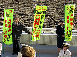 いよいよJBCの開幕を告げる生ファンファーレ! しかし、ファンファーレ隊の後ろには、なにやらのぼりを持った警察官が… 今からダート日本一を決めるというビッグレースの演出がこれ? JBCというイベントや、競馬というスポーツをどう捉えているのか疑問。 国体の開会式や、日本シリーズの始球式でも、このようなのぼりを掲げるのか?ということ。 |