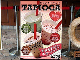食後、 フジビュースタンド3Fの 「トーキョーカフェ&ベーカリー」に新メニュー「 タピオカドリンク」の文字が見えたので寄ってみる。 味は3種類あり、今回は「 タピオカドリンクストロベリー」を注文。 ひと口飲んでみると、果たしてこれがタピオカなのか?という疑問… タピオカというか、いちご味の丸いゼリーというかグミというか、そういったものが入ったドリンクという感じ。 |