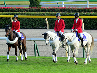 今日の 誘導馬。 メインレースを担当していたのは アロヒラニ、 シュガーヒル、 アルバリサでした。 |
