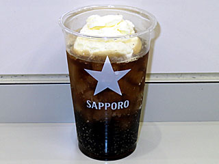 さらに、先週から約2年2ヶ月ぶりに営業再開した メモリアルスタンド3Fの 「サッポロドリンクコーナー」へ。 ドリンク200円引きキャンペーンを活用し「 コーラフロート」を注文。 コーラにバニラアイスをトッピングしたもので、冷たくて普通においしい。 |