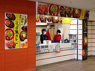 朝メシは フジビュースタンド2Fに期間限定オープン中の 「ココロ焦ガレ」へ。 「 温玉ビーフカレー」を注文。 ビーフカレーに半熟玉子をトッピングしたもので、普通においしい! |