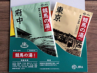 今日からの3日間開催は、先着で来場記念品として入浴剤の配布が行われていました。 「 競馬の湯」と書かれた2袋セット。 |