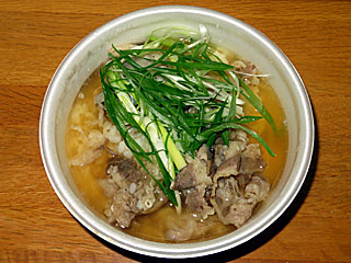 昼メシはスタンド2階フードコートにある「 ホルモン人」へ。 「 肉吸いご飯」500円。 肉うどんからうどんを抜いた 肉吸いにご飯を投入!? 東京では 肉吸いが通じないので、絶対にあり得ないメニューだけどウマイ! |