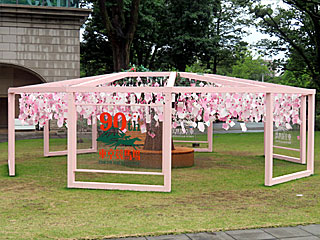 4/22から ローズガーデンに設置されている「 東京競馬場開設90周年記念ガーデン」も最終週を迎えました。 モニュメントに短冊のようなメッセージを飾れるのですが、最終的にはこれだけ賑やかになっていました! |  |  |