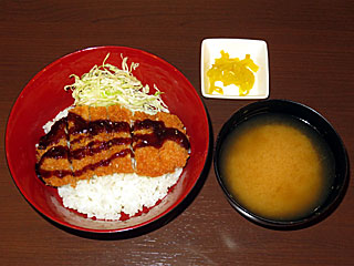 昼メシは フジビュースタンド1Fの 「カジュアル稲松」へ。 新メニュー「 ソース勝丼」を注文。 白飯の上にとんかつと千切りキャベツを載せて、とんかつソースをかけたもので、 以前存在した「 とん勝つライス」をさらにどんぶり化した感じ。 ソースかつ丼というか、ただ単にとんかつ定食の盛り付けをひとつにまとめただけで、どんぶり感がないなぁ… けど、とんかつは揚げたてサクサクでおいしかった。 |