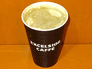 最後に フジビュースタンド3Fの 「エクセルシオールカフェ」へ。 新メニュー「 ほうじ茶ラテ」を注文。 ちょっとぬるめでしたが、ほうじ茶の風味も感じられておいしかった。 |