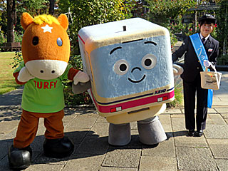 また、今日のメインは 京王杯2歳Sということで、 4年ぶりに「 京王電鉄グッズ特設ブース」が出店し、それに合わせて京王電鉄のマスコットキャラクター「 けい太くん」と、プラットガールの 其原有沙さんもご来場。 ターフィーくんとのコラボも見ることができました。 |  |  |