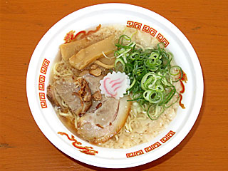 背脂で蓋をされたスープは熱々で、寒い日にはもってこいのラーメン! |  |  |