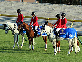 メインレースの 誘導馬。 今日は レンディル、 クリプトグラム、 マイネルラクリマ、 シークレットパスの4頭が務めていました。 |
