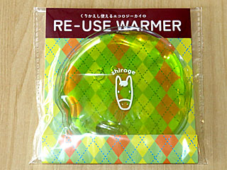さらにさらに、今度は「 Welcomeチャンス!」にアクセス! すると「E賞」が当選! 「shiroge」と書かれた「 リユースエコカイロ」を貰う。 |