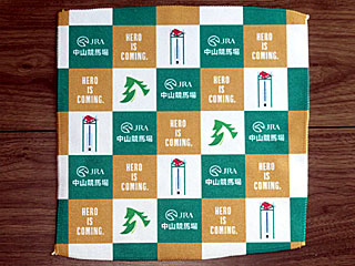 今日の「 Welcomeチャンス!」は「賞品もりもり!!!」デー! ってことで、ワンモアチケットも投入したところE賞が当選! 「 中山競馬場限定デザインハンドタオル」を貰う。 |